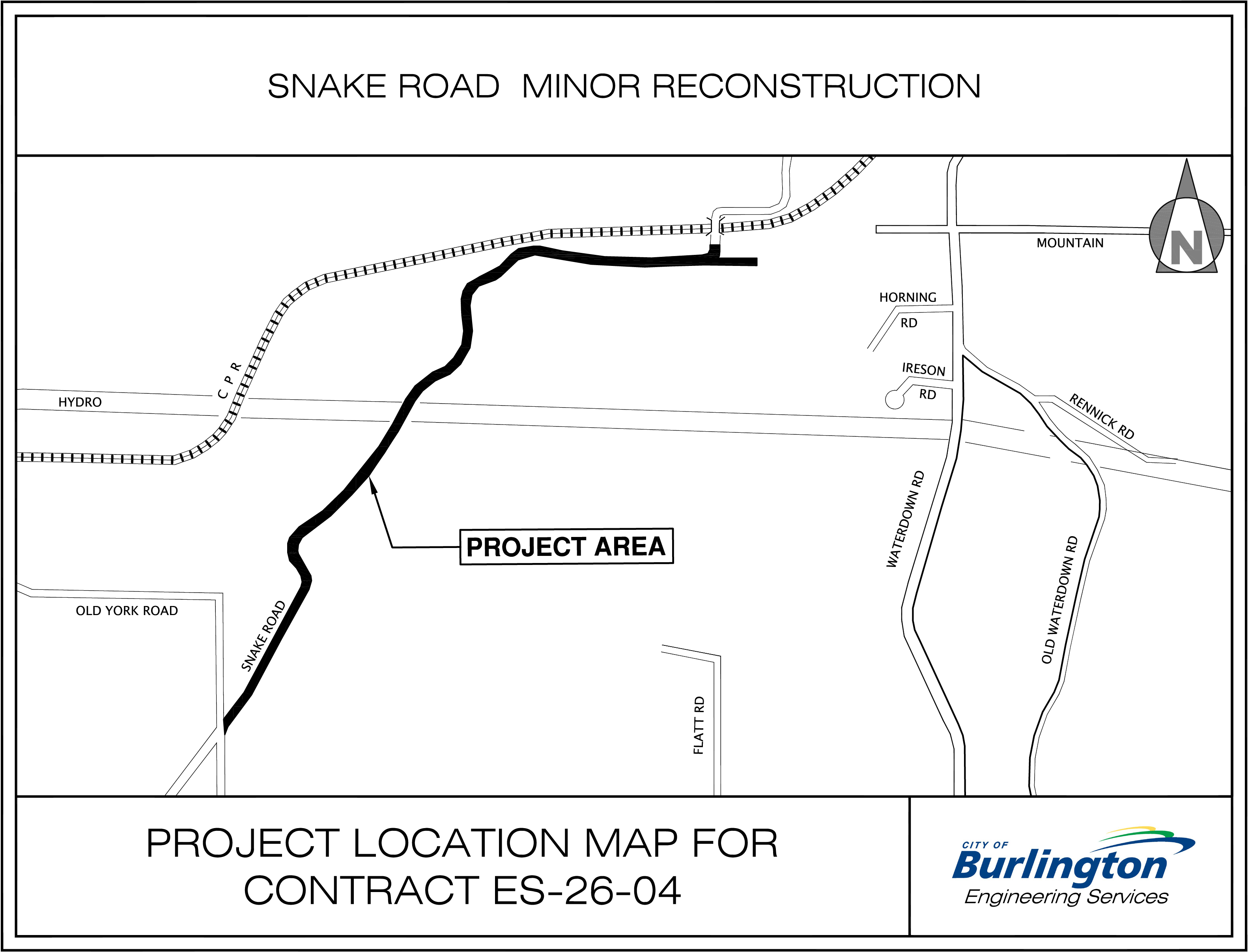 The City of Burlington will be making improvements on Snake Road in 2026. The City will be replacing the roadway pavement, steel beam guiderail, and stormwater culverts.